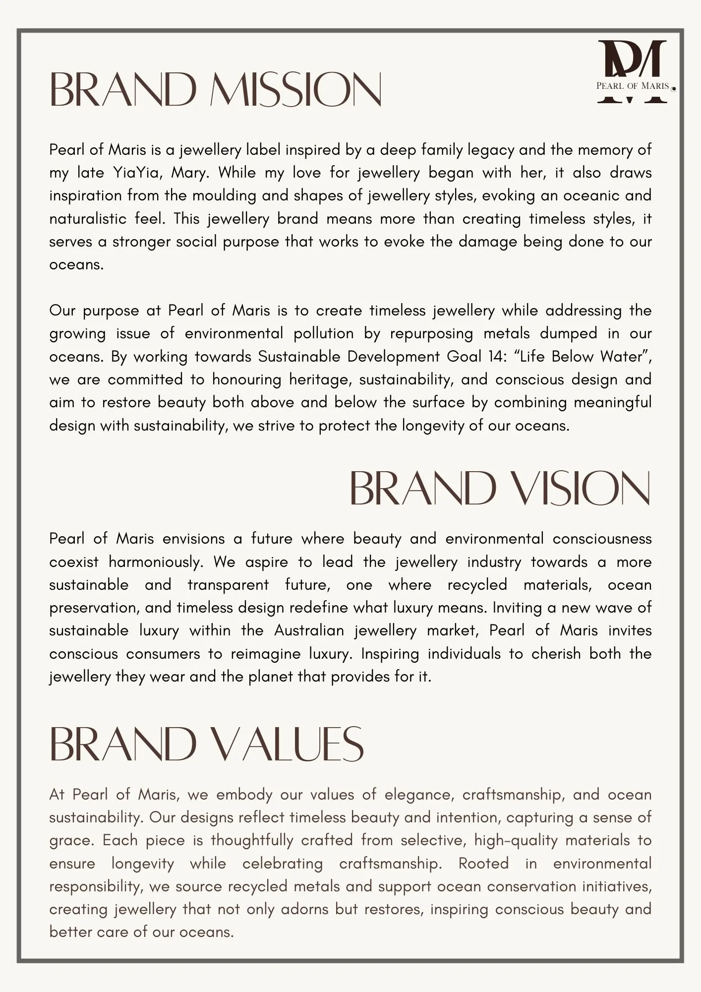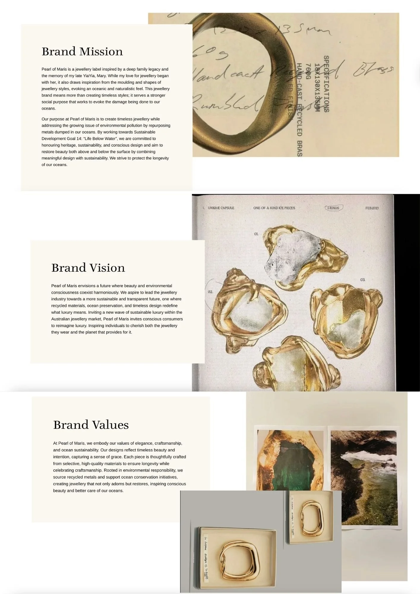 This assignment was my final capstone project, detailing the end-to-end pre-launch development of an emerging jewellery brand. It explored how sustainability-led storytelling, considered product design, and strategic brand positioning can build emotional connection and long-term brand equity.
